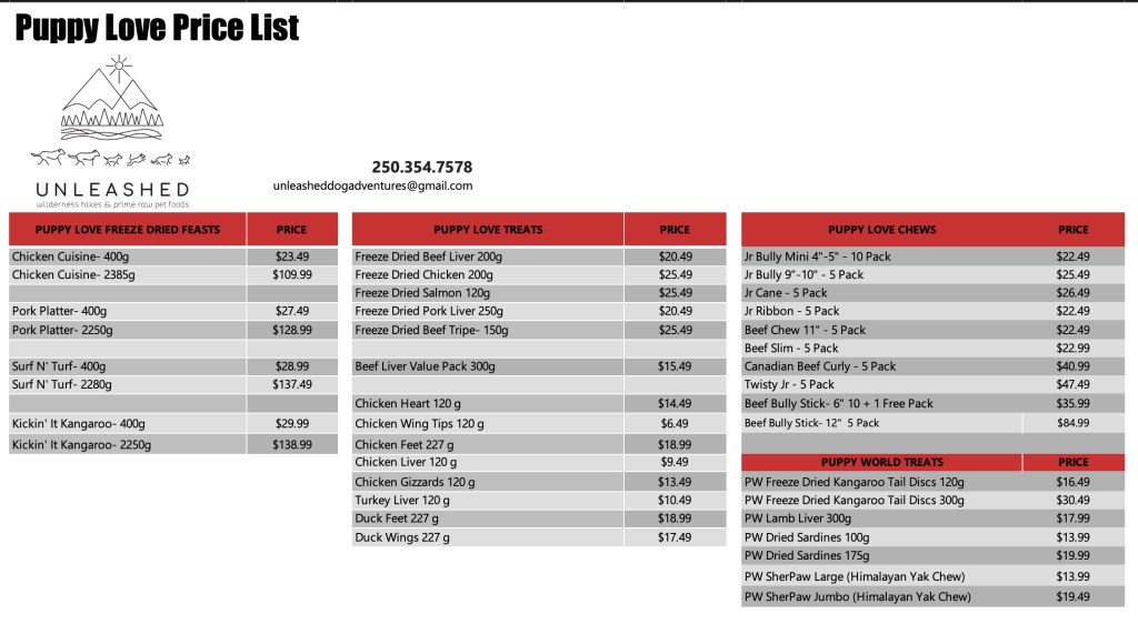 I am happy to be a distributor of Back2Paw, Beltrame Meats, Carnivora, Crudo, Courtlyn Custom Dog Foods, K9 Natural Freeze Dried, Prey Drive, Puppy Love Treats, Smack dehydrated raw foods, Willow Brook Treats, Welly Tails Supplements & Woof Air Dried & Freeze Dried Food. I also stock a large selection of raw bones, single ingredient treats and chews. They all offer a variety of high quality products to suit even the finickiest appetite.