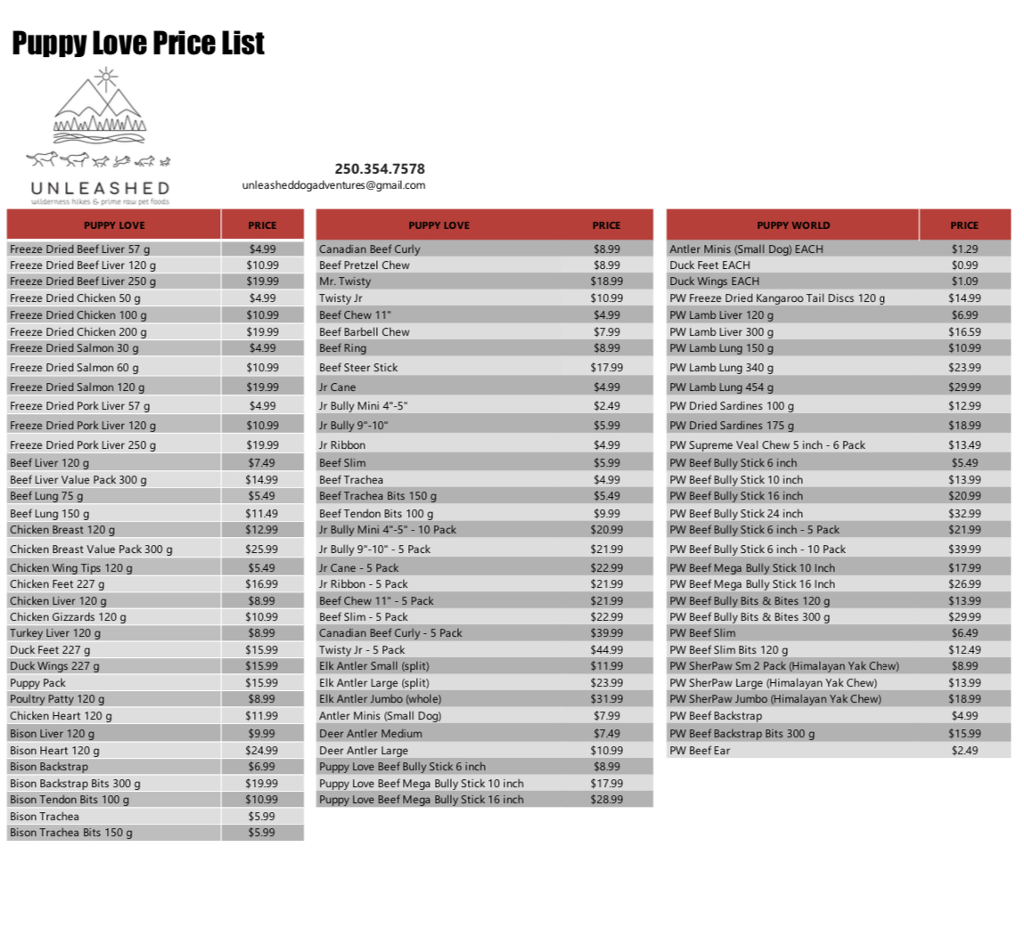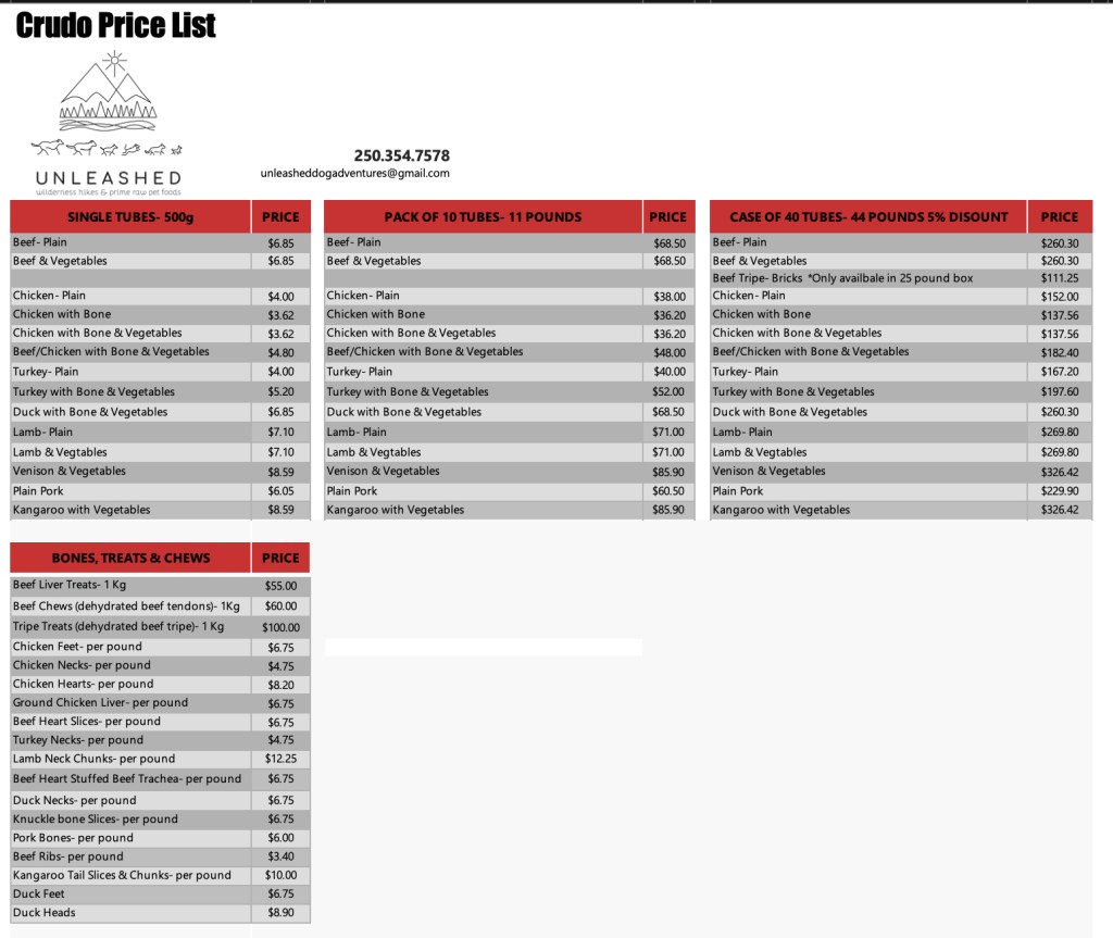 I am happy to be a distributor of Back2Paw, Beltrame Meats, Carnivora, Crudo, Courtlyn Custom Dog Foods, K9 Natural Freeze Dried, Prey Drive, Puppy Love Treats, Smack dehydrated raw foods, Willow Brook Treats, Welly Tails Supplements & Woof Air Dried & Freeze Dried Food. I also stock a large selection of raw bones, single ingredient treats and chews. They all offer a variety of high quality products to suit even the finickiest appetite.